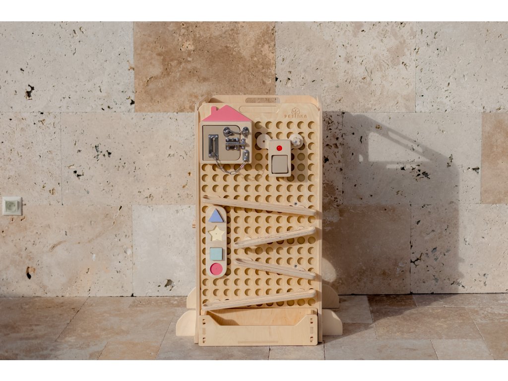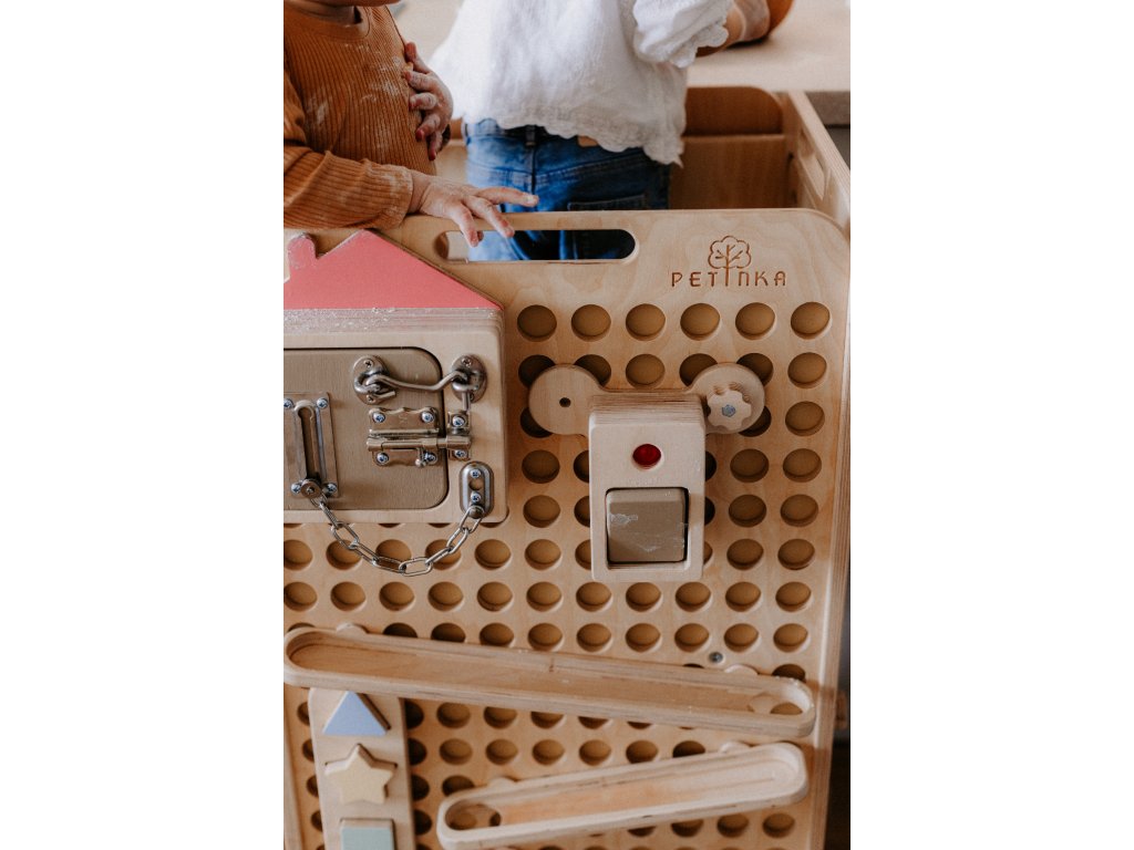 Díky našemu unikátnímu systému Ready to Activity dokážete na věž jednoduše připevňovat Montessori hračky, které dítě motivují ke hře a učení.